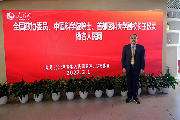 全國(guó)政協(xié)委員、首都醫(yī)科大學(xué)副校長(zhǎng)、中國(guó)科學(xué)院院士王松靈。崔辰光攝