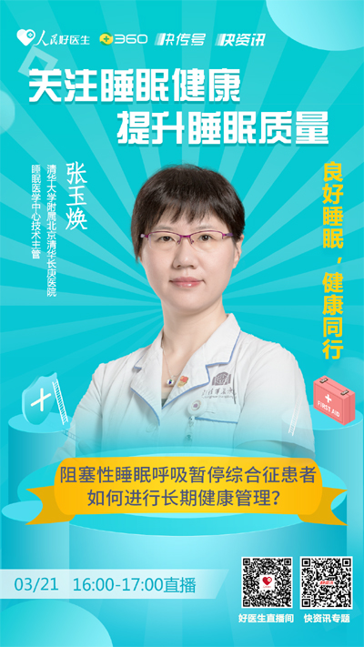 3月21日16:00,清華大學(xué)附屬北京清華長庚醫(yī)院睡眠醫(yī)學(xué)中心技術(shù)主管 張玉煥將做客“人民好醫(yī)生”APP直播間,與大家分享阻塞性睡眠呼吸暫停綜合征的健康管理科普知識。歡迎屆時收看。
