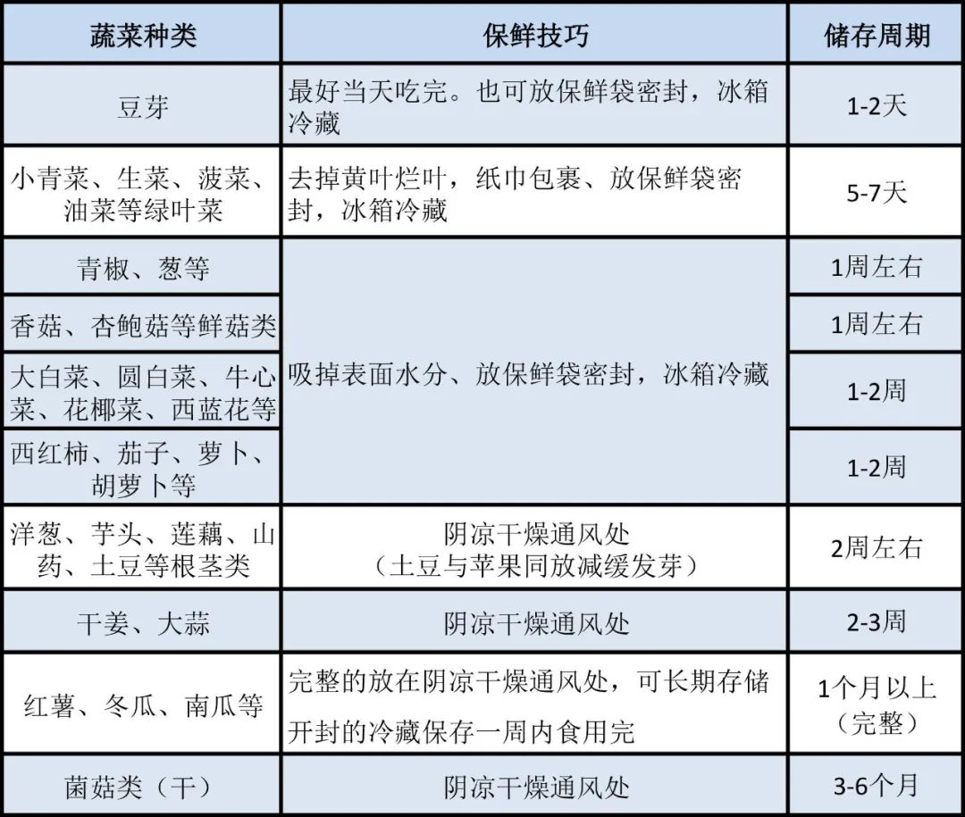 常見蔬菜保鮮技巧。來源:上海市疾控中心微信公眾號
