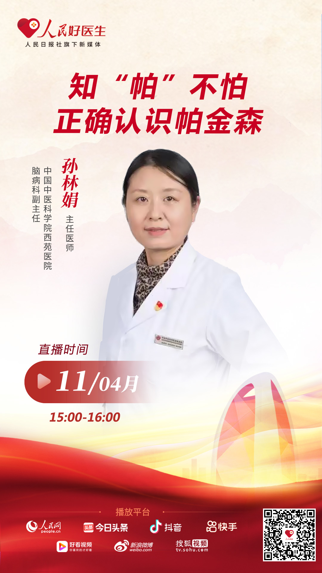 4月11日正值世界帕金森病日!叭嗣窈冕t(yī)生”客戶端將邀請(qǐng)到中國(guó)中醫(yī)科學(xué)院西苑醫(yī)院腦病科副主任孫林娟做客直播間,為大家詳細(xì)講解帕金森病的來(lái)龍去脈及治療方法,千萬(wàn)不要錯(cuò)過(guò)。