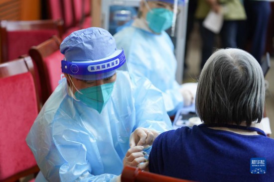 4月18日,醫(yī)護(hù)人員在北京市東城區(qū)為老年人接種新冠疫苗。新華社記者鞠煥宗攝