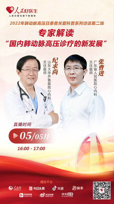 5月5日16:00,廣東省人民醫(yī)院心內(nèi)科主任醫(yī)師張曹進(jìn)、山東大學(xué)齊魯醫(yī)院心內(nèi)科主任醫(yī)師紀(jì)求尚將做客“人民好醫(yī)生”客戶端,為大家揭開肺動脈高壓的神秘面紗,解讀國內(nèi)肺動脈高壓診療的新發(fā)展。