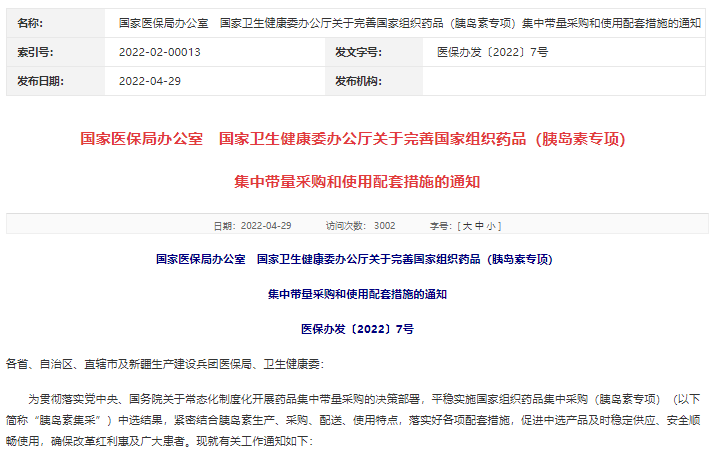 兩部門發(fā)文完善國家集采胰島素落地措施