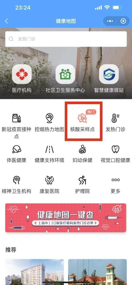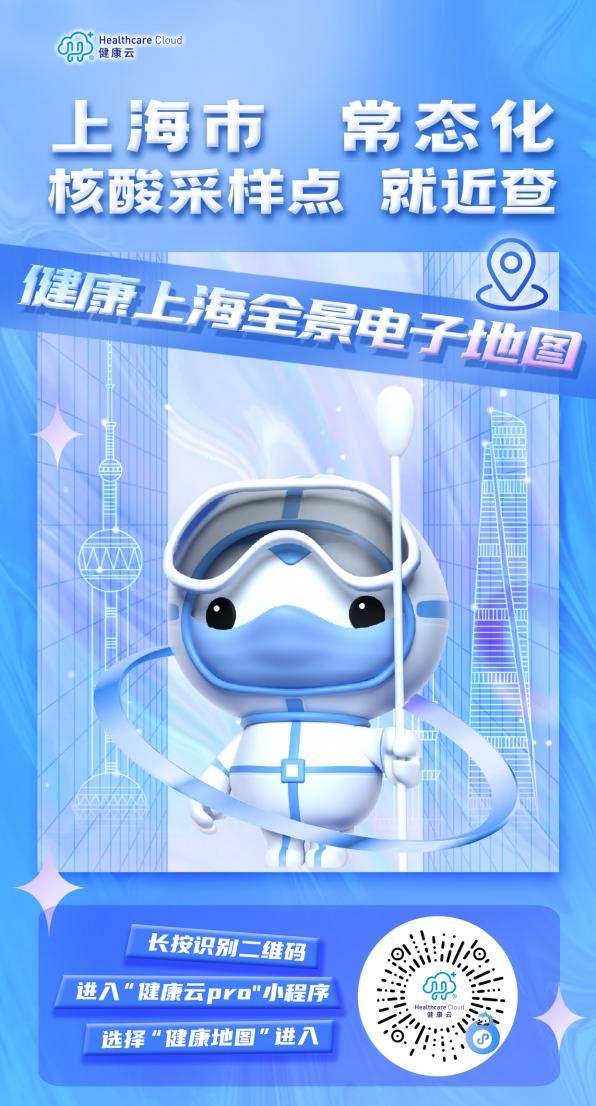 記者近日從上海市健康促進委員會辦公室獲悉,基于健康云平臺的“健康上海全景電子地圖”已陸續(xù)分批將上海市常態(tài)化核酸采樣點的點位信息納入地圖查詢功能,打開“健康云Pro”小程序,進入“健康地圖”,即可就近便捷查詢“核酸檢測點”。