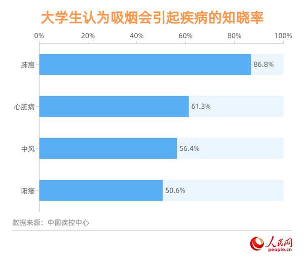 大學(xué)生認(rèn)為吸煙會(huì)引起疾病的知曉率。制表:孫紅麗