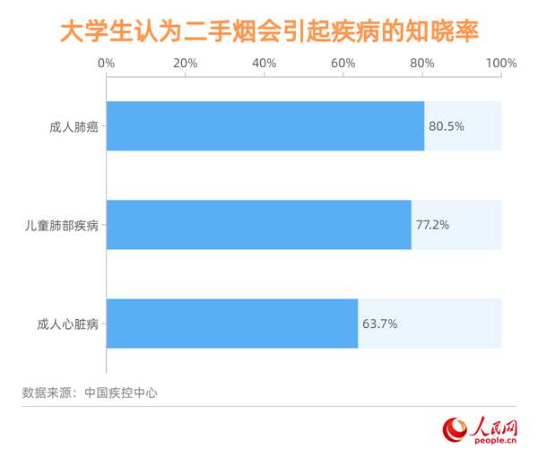 大學(xué)生認(rèn)為二手煙會(huì)引起疾病的知曉率。制表:孫紅麗