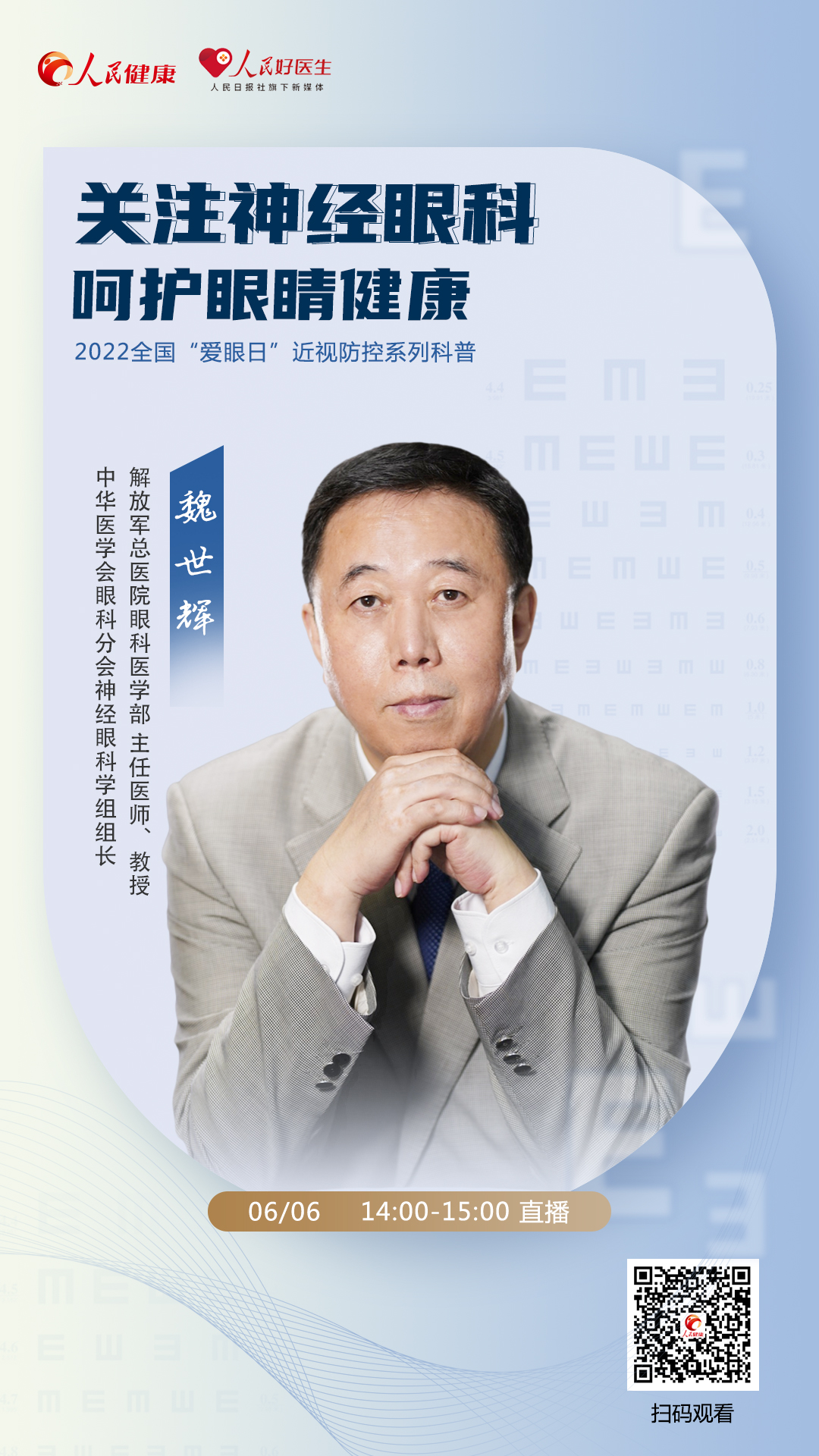 6月6日14:00至15:00,“人民好醫(yī)生”客戶端將邀請(qǐng)解放軍總醫(yī)院眼科醫(yī)學(xué)部主任醫(yī)師魏世輝做客演播室,詳細(xì)講解神經(jīng)眼科學(xué)相關(guān)科普知識(shí)。