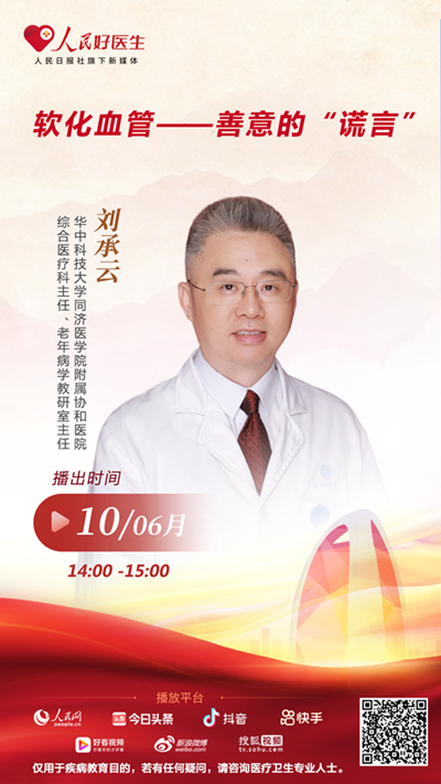 6月10日14:00,華中科技大學(xué)同濟(jì)醫(yī)學(xué)院附屬協(xié)和醫(yī)院綜合醫(yī)療科主任、老年病學(xué)教研室主任劉承云將做客“人民好醫(yī)生”客戶端直播間,和大家分享血管老化的相關(guān)知識(shí),教大家保持血管年輕態(tài)的秘訣,歡迎屆時(shí)收看。