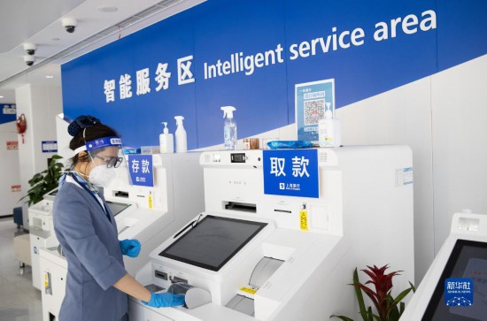 6月16日,在上海銀行徐匯支行營業(yè)廳,工作人員在消殺取款機。根據(jù)防疫要求,銀行自助機具使用從原來的雙循環(huán)模式改為單循環(huán)模式,即存錢機具和取錢機具分開,確保存取現(xiàn)金安全;同時,盡量做到“一戶一消殺”,即每位客戶辦理完業(yè)務(wù)后,都對機具進行簡單消殺處理。