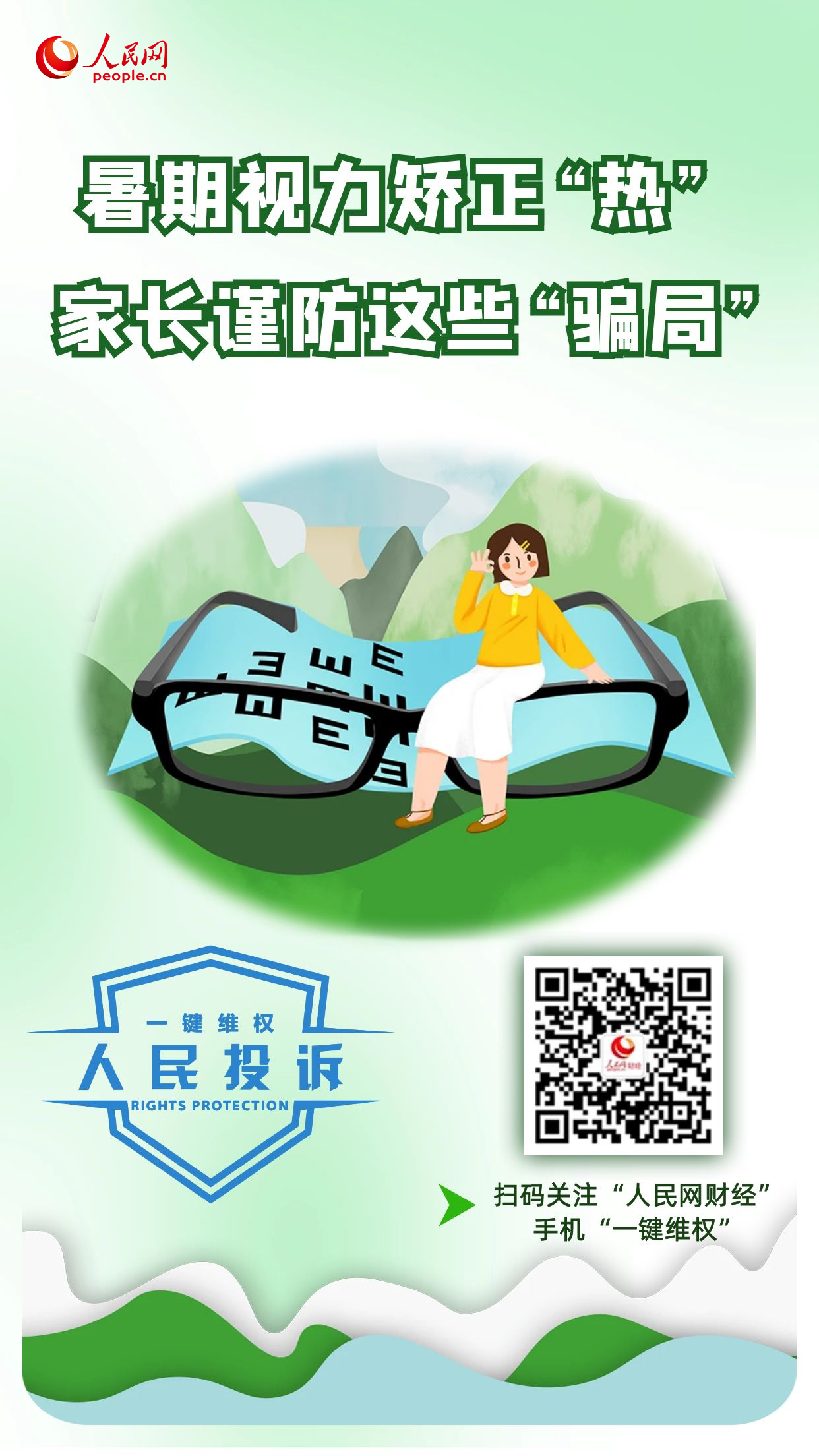 近視防控和視力健康是關(guān)乎兒童青少年的健康成長的大事,關(guān)乎國家和民族的未來。為推動持續(xù)綜合施策,呼吁全社會齊抓共管,打擊不良機構(gòu)和虛假宣傳,營造科學(xué)正確關(guān)愛兒童青少年視力的良好氛圍,引導(dǎo)兒童青少年和家長切實增強辨別能力、走出認識誤區(qū)、理性消費、科學(xué)防范近視,人民網(wǎng)“人民投訴”平臺即日起征集相關(guān)維權(quán)線索,如果您遭遇此類權(quán)益侵害,或了解相關(guān)領(lǐng)域某些欺詐行為中不為人知的陷阱、黑幕,歡迎您掃碼關(guān)注“人民網(wǎng)財經(jīng)”微信公眾號留言、投訴、曝光。屆時我們還將邀請中消協(xié)相關(guān)領(lǐng)域權(quán)威專家做客“消費洞察”欄目,針對網(wǎng)友的熱點留言投訴答疑解惑,敬請期待。
