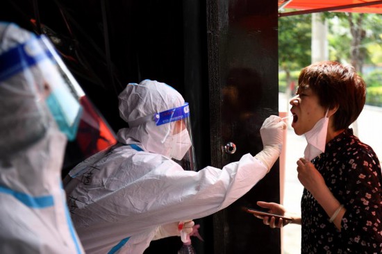 7月3日,在安徽省宿州市泗縣虹城街道東關社區(qū),醫(yī)務人員為居民進行核酸采樣。新華社記者 黃博涵 攝