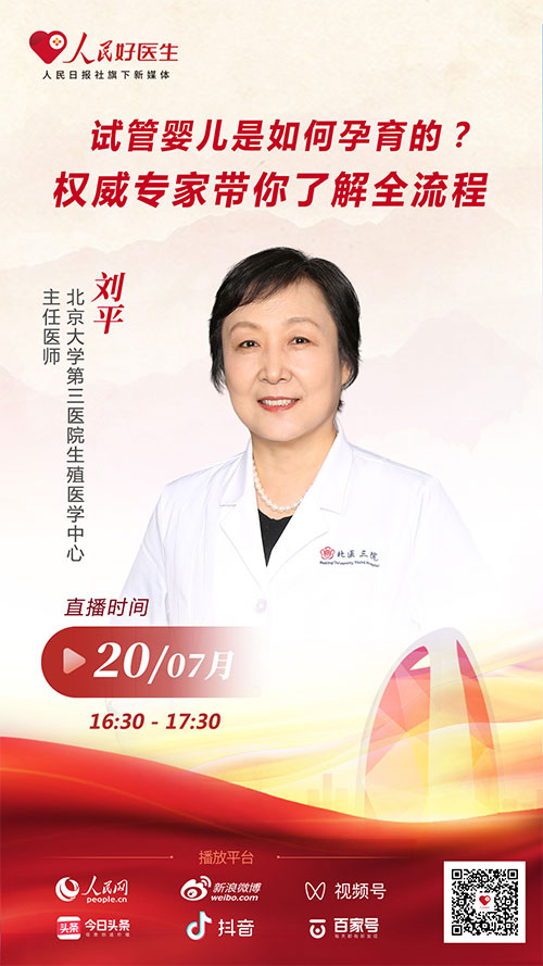 7月20日16:30,北京大學(xué)第三醫(yī)院生殖醫(yī)學(xué)中心主任醫(yī)師劉平將做客“人民好醫(yī)生”客戶端,為廣大網(wǎng)友科普輔助生殖技術(shù)相關(guān)知識(shí)。
