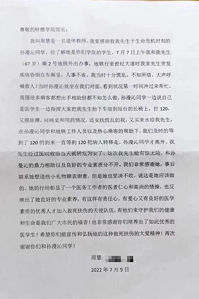 7月19日,上海中醫(yī)藥大學(xué)官微分享了一則暖心新聞,該學(xué)校2022級博士生孫漫沁同學(xué)救人于生命危急時刻,被稱贊是一名有愛心又有良好醫(yī)學(xué)素養(yǎng)的優(yōu)秀人才!