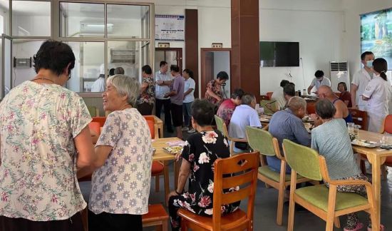 浙江省紹興市一家民營養(yǎng)老服務(wù)機(jī)構(gòu)內(nèi),老人們在用餐。受訪者供圖