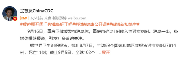 重慶發(fā)現(xiàn)猴痘病例,如何防控?吳尊友發(fā)文回應(yīng)