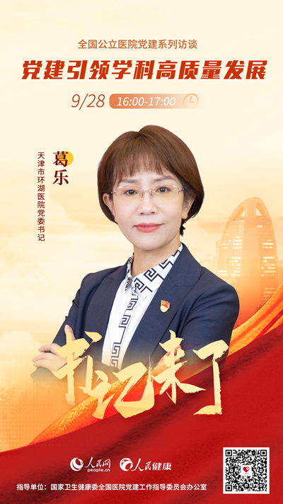 建設(shè)患者放心、人民滿意的醫(yī)院是公立醫(yī)院的使命。每家醫(yī)院在做黨建工作時(shí)都有自己的特色,那么,天津市環(huán)湖醫(yī)院黨建工作有什么與眾不同之處?9月28日16:00-17:00,天津市環(huán)湖醫(yī)院黨委書記葛樂(lè)將做客《書記來(lái)了》,與大家分享醫(yī)院在加強(qiáng)黨建、改善人民群眾就醫(yī)體驗(yàn)等方面的經(jīng)驗(yàn)和做法,敬請(qǐng)關(guān)注。