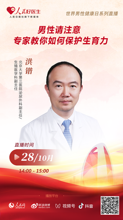 10月28日14:00,北京大學(xué)第三醫(yī)院泌尿外科副主任/生殖醫(yī)學(xué)科副主任洪鍇將做客“人民好醫(yī)生”客戶端直播間,向廣大網(wǎng)友分享男性健康的相關(guān)知識(shí),教大家破譯精液里暗藏的健康密碼,歡迎屆時(shí)收看。
