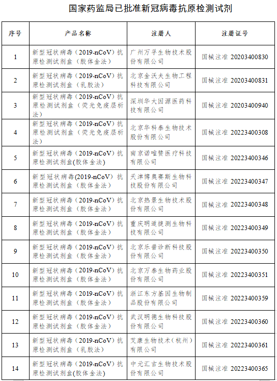 國(guó)家藥監(jiān)局已批準(zhǔn)40個(gè)新冠病毒抗原檢測(cè)試劑