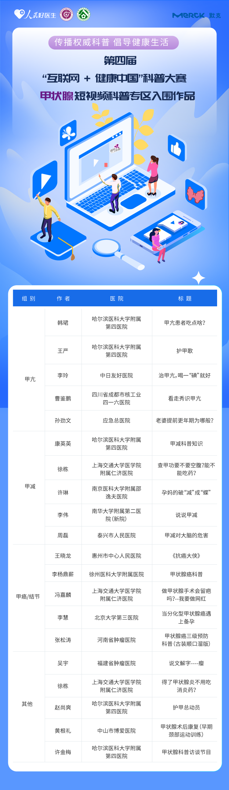 第四屆科普大賽“甲狀腺短視頻專區(qū)”入圍名單揭曉