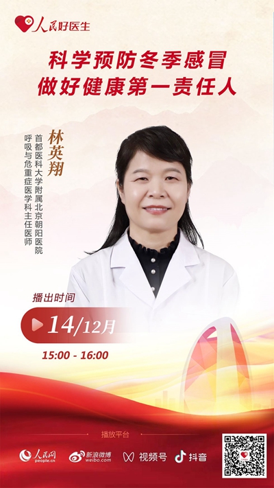 12月14日15:00-16:00,首都醫(yī)科大學(xué)附屬北京朝陽(yáng)醫(yī)院呼吸與危重癥醫(yī)學(xué)科主任醫(yī)師林英翔將做客“人民好醫(yī)生”客戶端,將就冬季感冒的相關(guān)話題進(jìn)行分享,歡迎屆時(shí)收看。