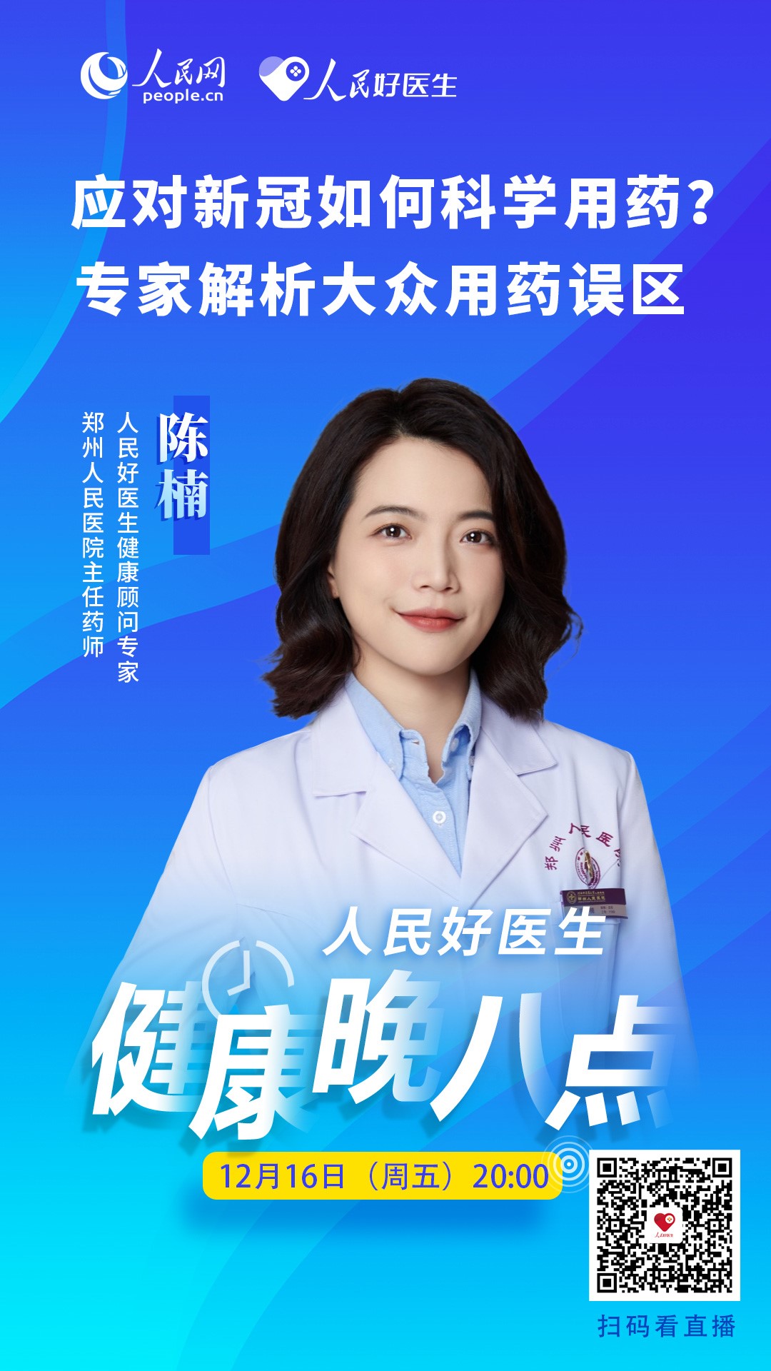 12月16日20:00,《健康晚八點》欄目第五期邀請鄭州人民醫(yī)院主任藥師陳楠做客直播間,詳細講解新冠患者如何科學(xué)用藥。