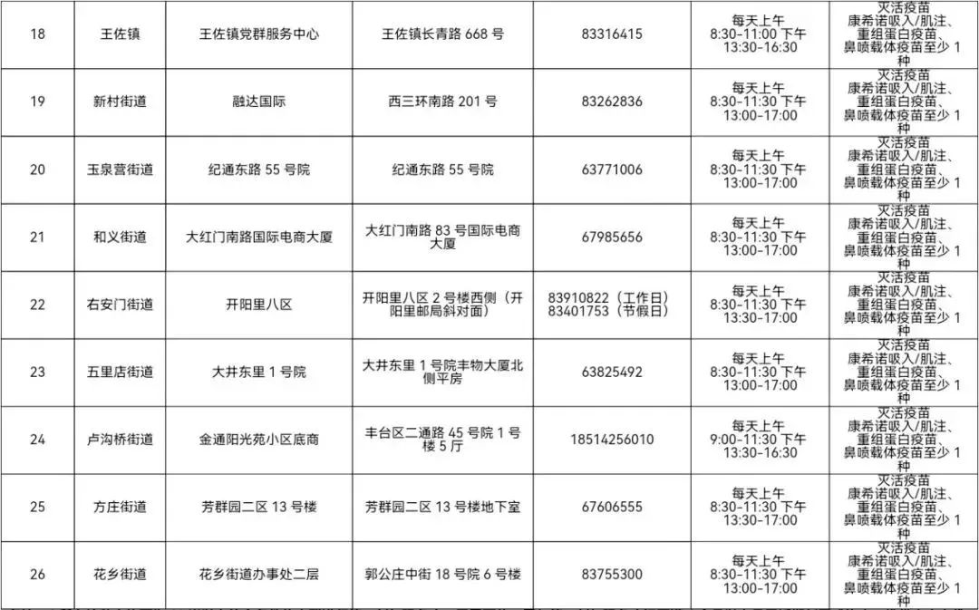 說明:因疫情防控原因,點位可能存在動態(tài)調(diào)整,前往接種人員可在工作時間預先撥打電話問詢,確定開展接種后再前往。