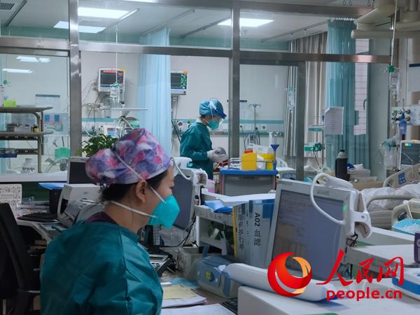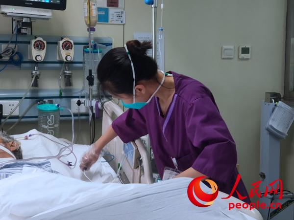 1月2日,北京醫(yī)院重癥病房護(hù)士正在給患者輸液。人民網(wǎng)記者 喬業(yè)瓊攝