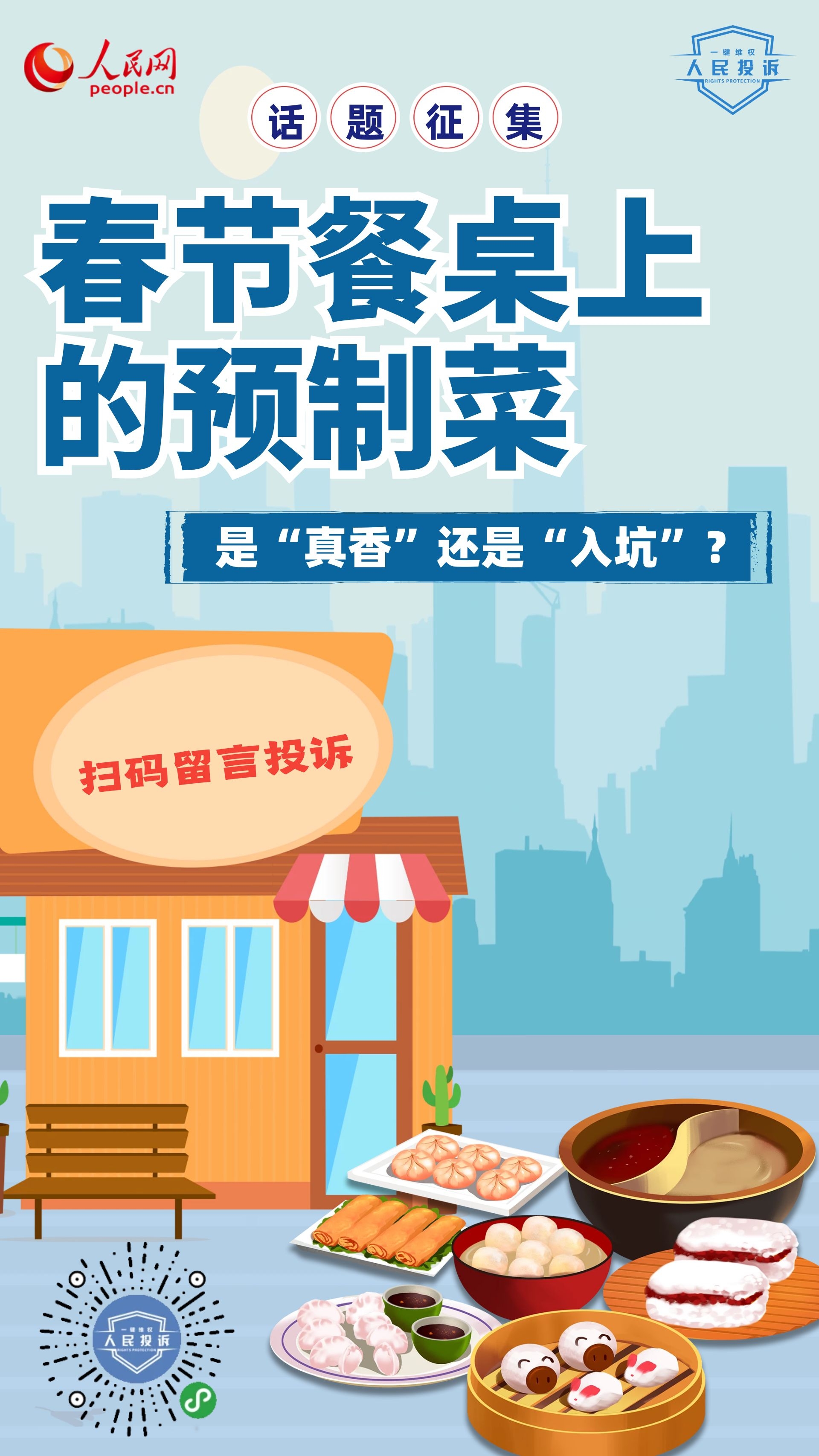 節(jié)日期間,為了讓消費(fèi)者選得安心、買得放心、吃出信心,推動預(yù)制菜行業(yè)向健康有序的方向發(fā)展,完善相關(guān)行業(yè)標(biāo)準(zhǔn)與規(guī)范,人民網(wǎng)“人民投訴”平臺即日起將征集相關(guān)維權(quán)線索,如果您遭遇此類權(quán)益侵害,或了解某些欺詐行為中不為人知的陷阱、黑幕,歡迎您掃碼關(guān)注“人民網(wǎng)財(cái)經(jīng)”微信公眾號或掃描“人民投訴·一鍵維權(quán)”微信小程序留言、投訴、曝光。