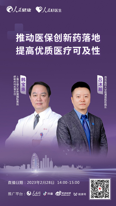 2月28日14:00,我們特別邀請到上海交通大學(xué)附屬胸科醫(yī)院呼吸內(nèi)科名譽(yù)主任韓寶惠、西南醫(yī)科大學(xué)附屬醫(yī)院副院長呂沐瀚做客直播間,圍繞“推動創(chuàng)新抗腫瘤藥物落地 提高優(yōu)質(zhì)醫(yī)療可及性”話題進(jìn)行討論,為各級醫(yī)療機(jī)構(gòu)解決腫瘤創(chuàng)新藥物的醫(yī)院準(zhǔn)入提供思路,讓新藥、好藥能夠“接地氣”,也為腫瘤患者帶去更多生機(jī)與希望。