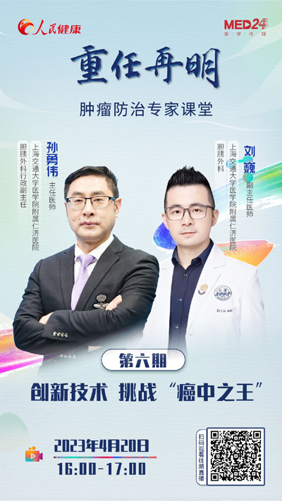 如何正確認識“癌王”?4月20日16:00,上海交通大學醫(yī)學院附屬仁濟醫(yī)院膽胰外科行政副主任、主任醫(yī)師孫勇偉,上海交通大學醫(yī)學院附屬仁濟醫(yī)院膽胰外科副主任醫(yī)師劉巍將做客演播室,和大家一起分享相關(guān)科普內(nèi)容。