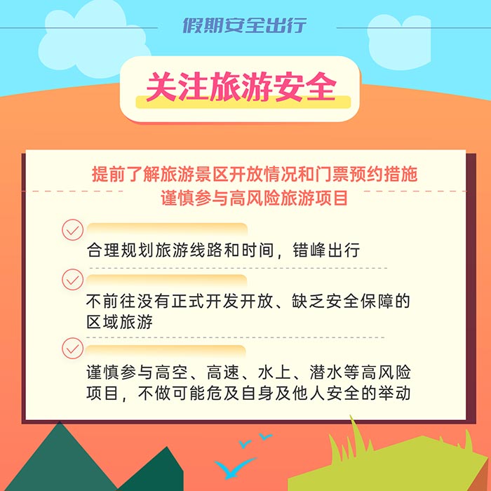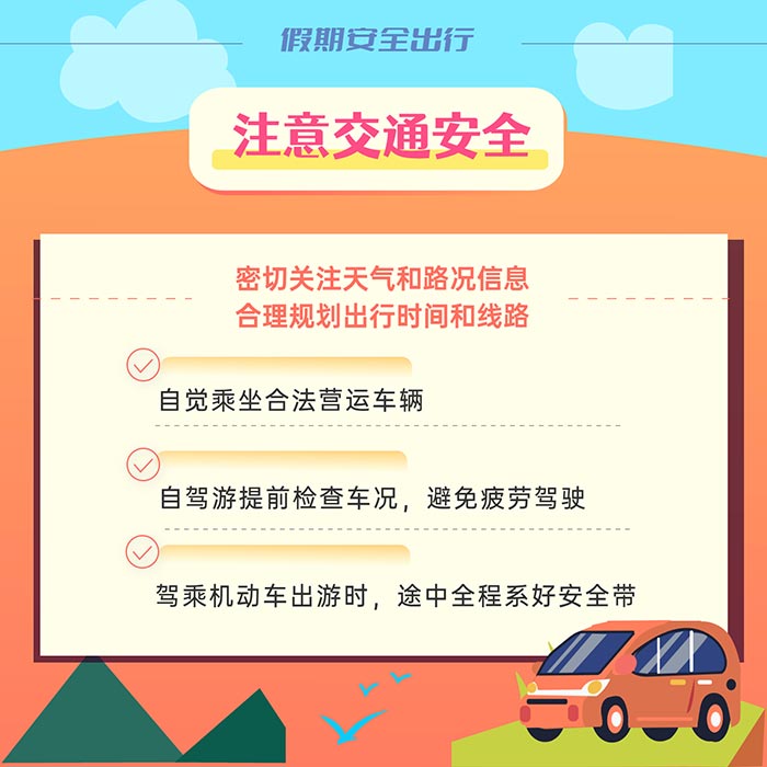 近日,全國各地陸續(xù)迎來出行高峰!拔逡弧奔倨谕獬鲇瓮、走親訪友,一定要注意出行安全,做好充分出行準(zhǔn)備。這份安全提示請收好!