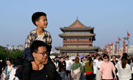 4月30日,游客在西安城墻景區(qū)參觀游覽。新華社記者 劉瀟 攝