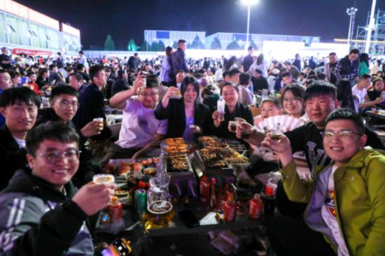 4月29日,游客在淄博市一家燒烤城吃燒烤。新華社發(fā)(朱偉攝)
