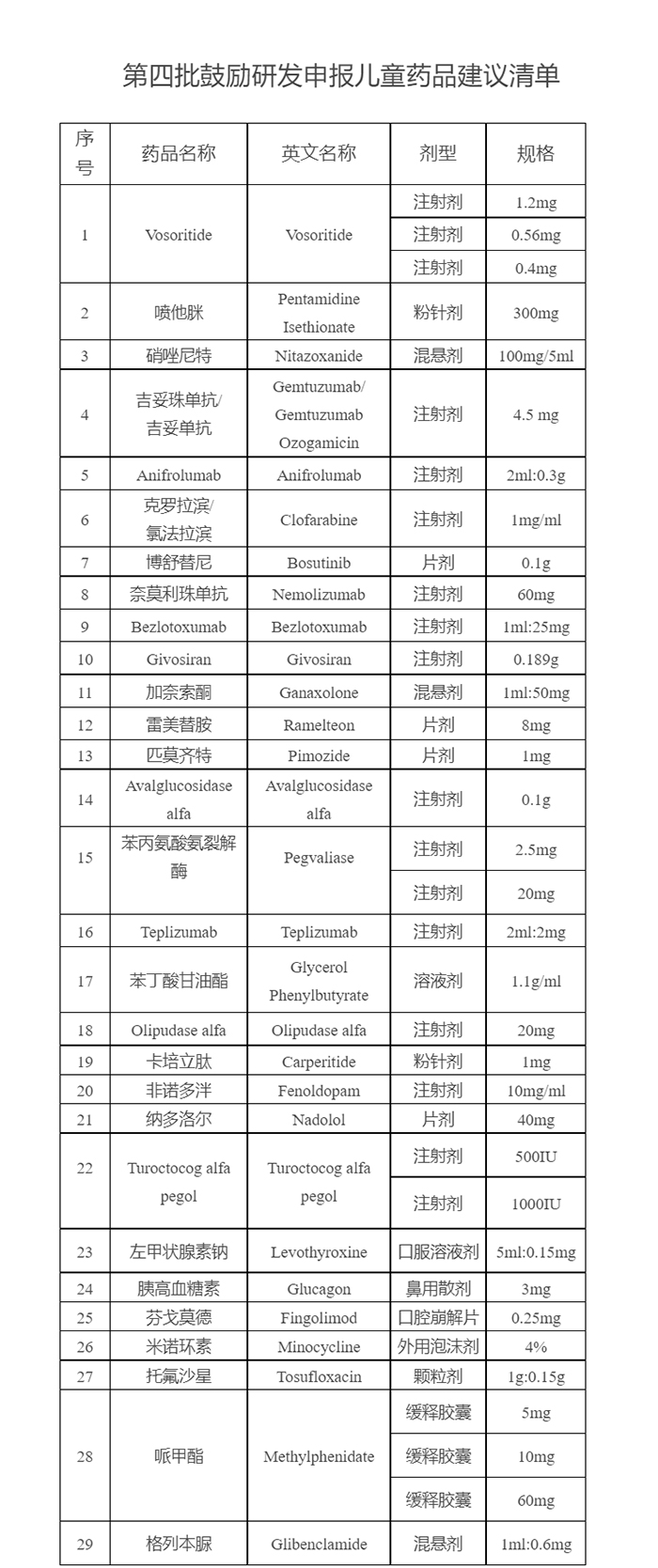 共計29種!第四批鼓勵研發(fā)申報兒童藥品建議清單發(fā)布