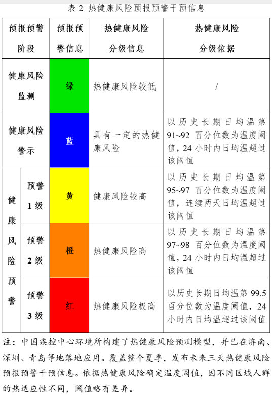 (2)熱健康風(fēng)險(xiǎn)預(yù)報(bào)預(yù)警干預(yù)信息。包括健康風(fēng)險(xiǎn)監(jiān)測(cè)、健康風(fēng)險(xiǎn)警示、健康風(fēng)險(xiǎn)預(yù)警信息(詳見(jiàn)表2)。