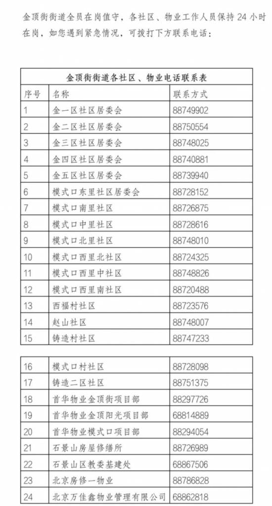 連日來(lái),北京出現(xiàn)暴雨或大暴雨,局地現(xiàn)特大暴雨。各區(qū)先后公布了社區(qū)、村的聯(lián)系方式,遇到緊急情況,可撥打下方電話與工作人員聯(lián)系。