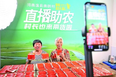 在河南省焦作市溫縣黃莊鎮(zhèn)南韓村活躍著一支“銀發(fā)直播團”,他們借助網(wǎng)絡(luò)平臺推介農(nóng)產(chǎn)品。新華社發(fā)