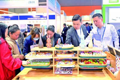 客商在2023中國國際老齡產(chǎn)業(yè)博覽會參觀選購老年人玩具。新華社發(fā)