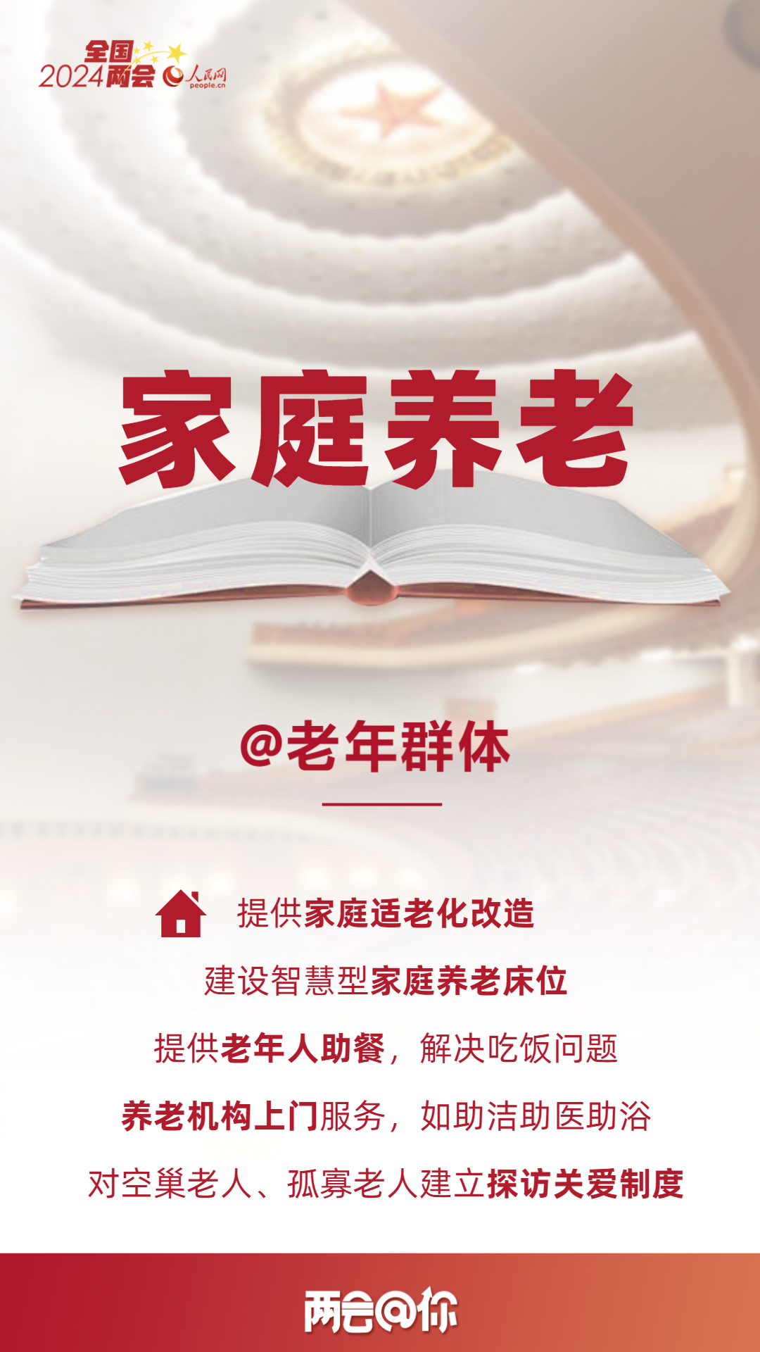 編者按:家家有老人,人人都會(huì)老。如何讓老年人健康幸福地安度晚年,是一道現(xiàn)實(shí)課題。推動(dòng)“養(yǎng)老”向“享老”轉(zhuǎn)變,今年全國(guó)兩會(huì)釋放了哪些利好?本期“兩會(huì)@你”,為您梳理養(yǎng)老政策“紅包”。