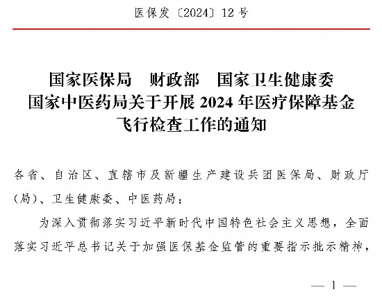 四部門:開展2024年醫(yī)療保障基金飛行檢查工作