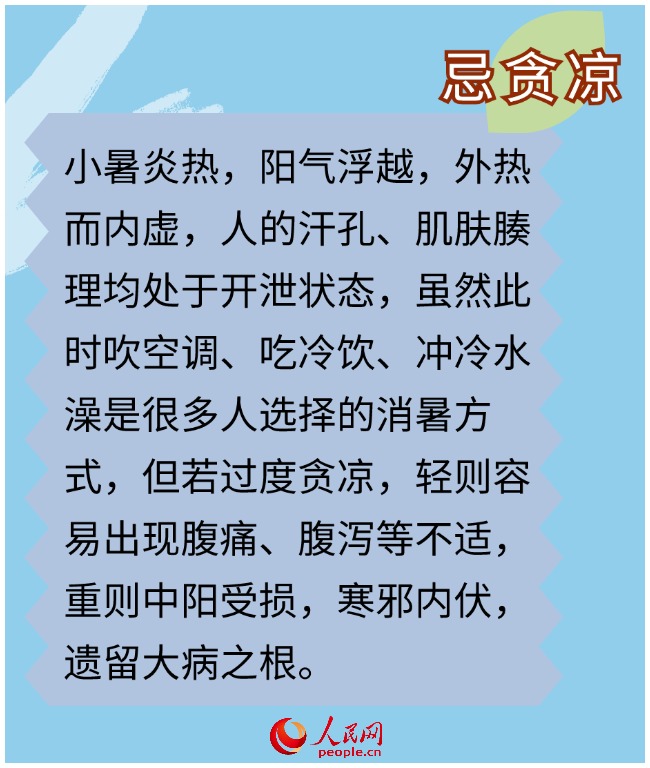 今天是二十四節(jié)氣中的小暑,暑氣自此更濃,天氣會越來越熱。天津中醫(yī)藥大學附屬?滇t(yī)院主任醫(yī)師韓娟在接受采訪時介紹,小暑節(jié)氣,人體陽氣旺盛,氣血和津液代謝過快,機體處于超負荷狀態(tài),此時對于身體調(diào)理顯得尤為重要,有“三宜三忌”應予以注意。