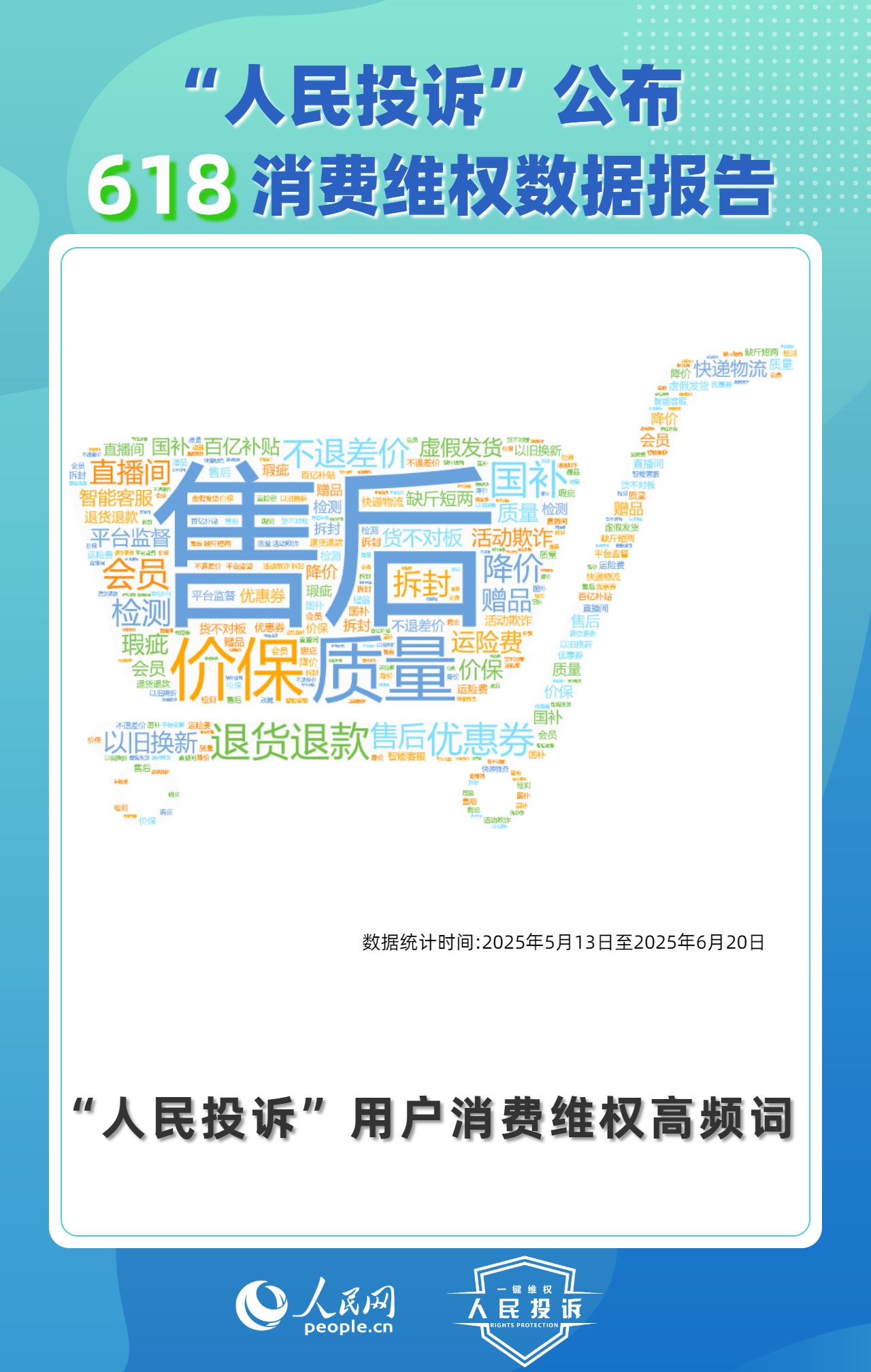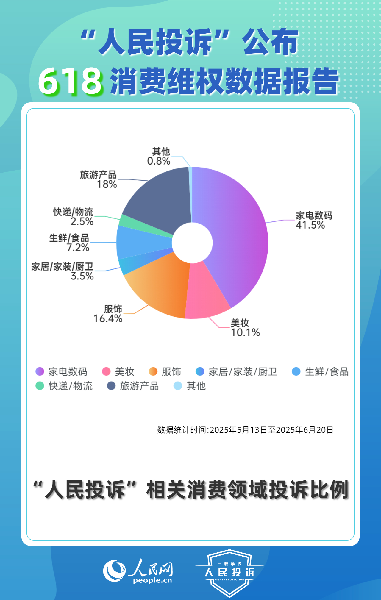 人民網(wǎng)“人民投訴”平臺(以下簡稱“人民投訴”)對5月13日至6月20日平臺用戶消費維權(quán)情況進(jìn)行數(shù)據(jù)分析發(fā)現(xiàn),今年“618”消費維權(quán)熱點持續(xù)聚焦兩大關(guān)鍵詞——“國補”及“價?!?,“假低價”“超長預(yù)售”等老問題逐步得到解決,數(shù)碼家電品類投訴量最多,消費者退差價訴求突出,AI全方位滲透帶來維權(quán)新考驗。