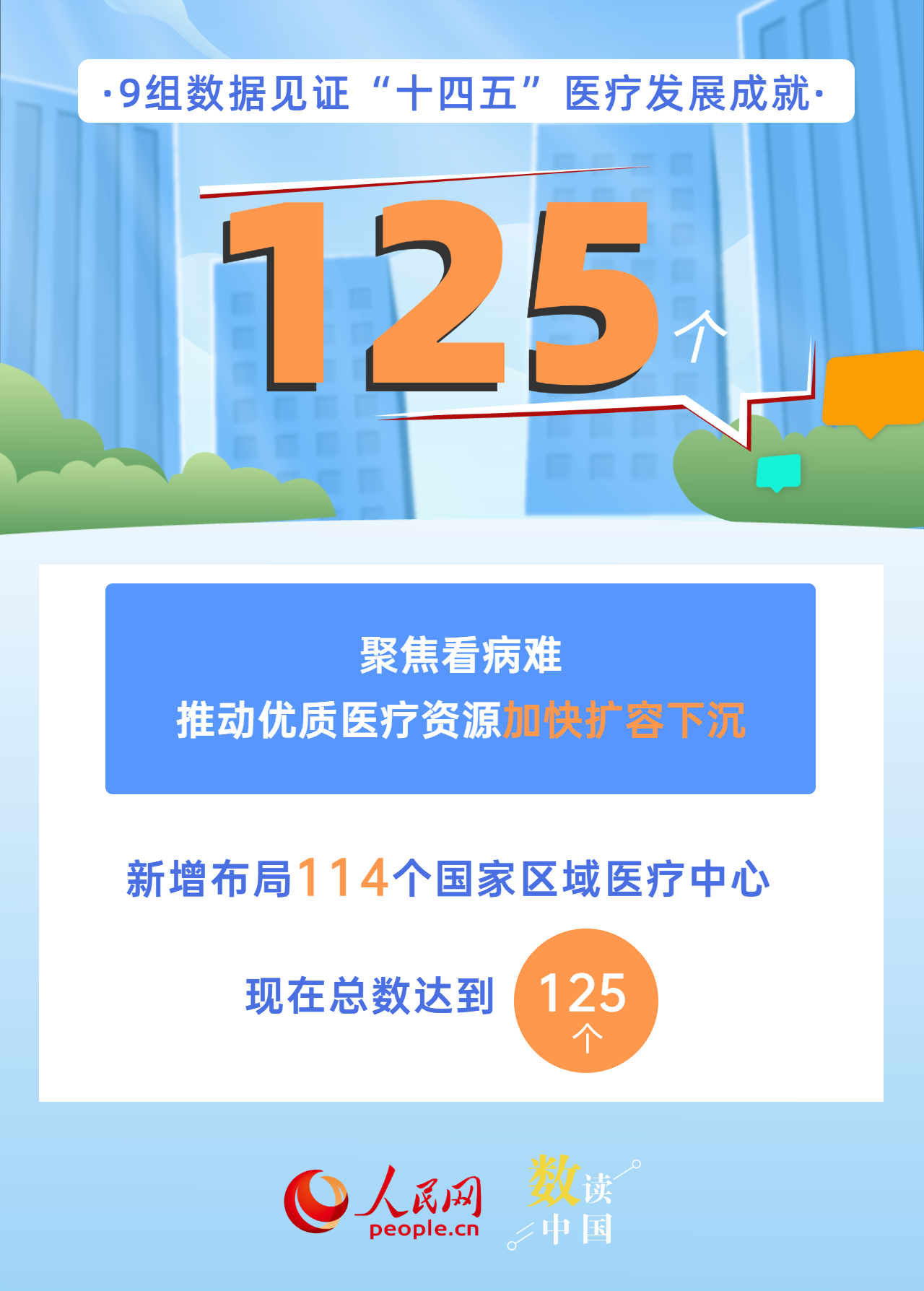 新增布局114個國家區(qū)域醫(yī)療中心、全國跨省異地就醫(yī)直接結(jié)算惠及4億多人次、人均預(yù)期壽命達(dá)到79歲、402種藥品新增進(jìn)入國家醫(yī)保藥品目錄……今年是“十四五”規(guī)劃收官之年,“十四五”時期,我國醫(yī)療衛(wèi)生事業(yè)發(fā)展取得哪些成就?一組海報帶你用數(shù)字感知。
