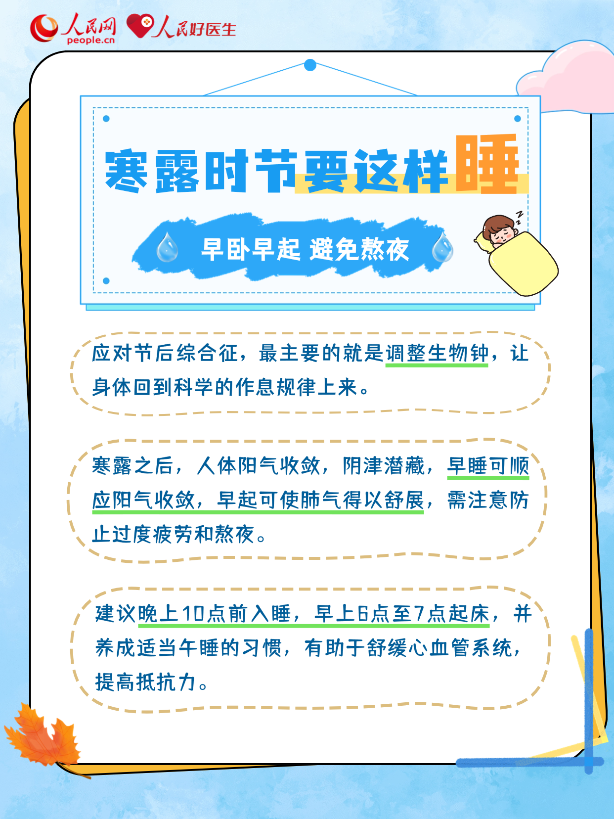 寒露如約而至,標(biāo)志著深秋的到來(lái),氣溫持續(xù)下降,晝夜溫差增大,自然界中的陽(yáng)氣漸收,陰氣漸盛。多數(shù)人因假日期間,睡眠及飲食規(guī)律被打亂,常表現(xiàn)出周身困乏、腸胃不適甚至惡心、陣發(fā)性眩暈、焦慮、睡眠差等癥狀。寒露時(shí)節(jié)養(yǎng)生應(yīng)注意哪些要點(diǎn)?