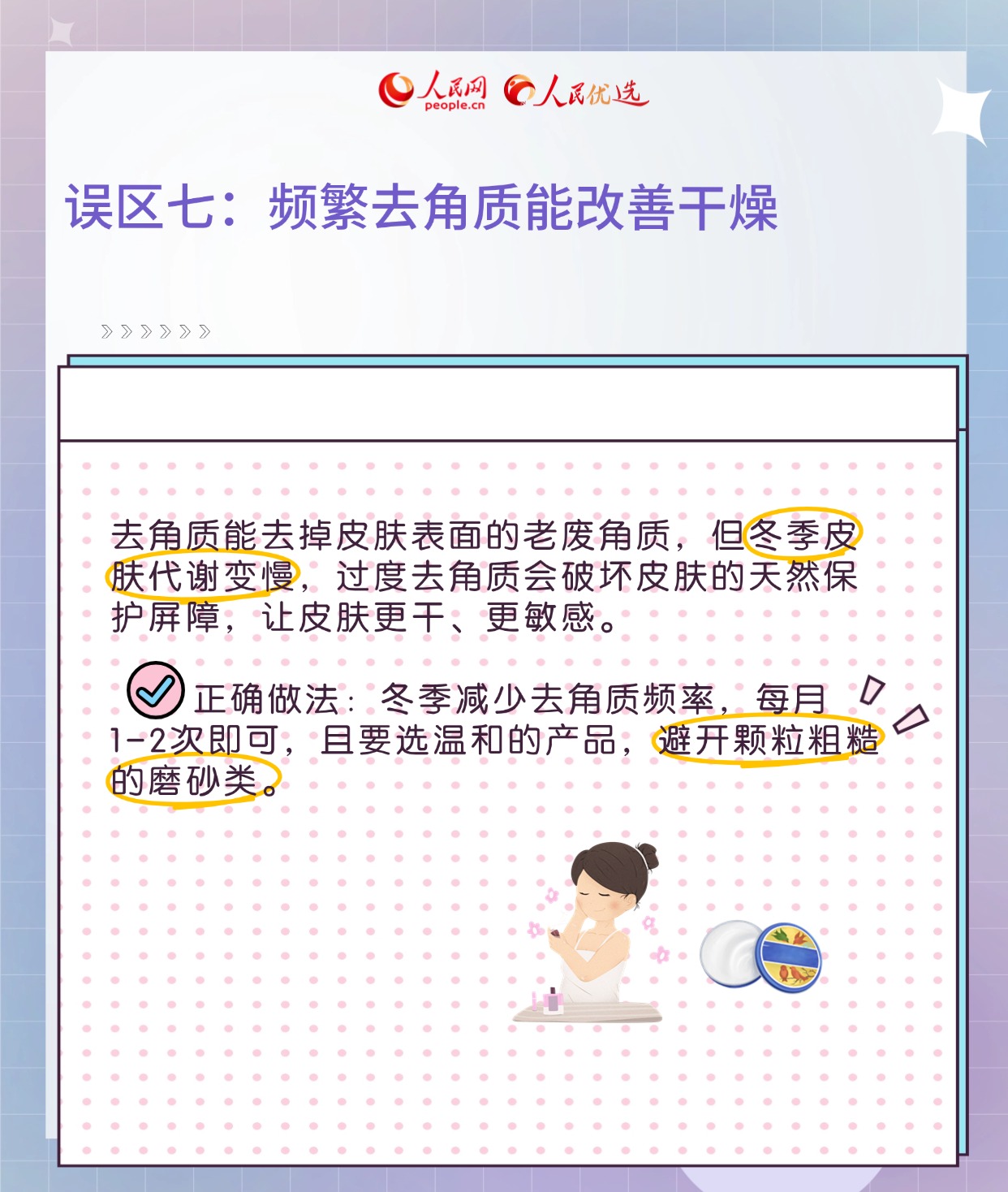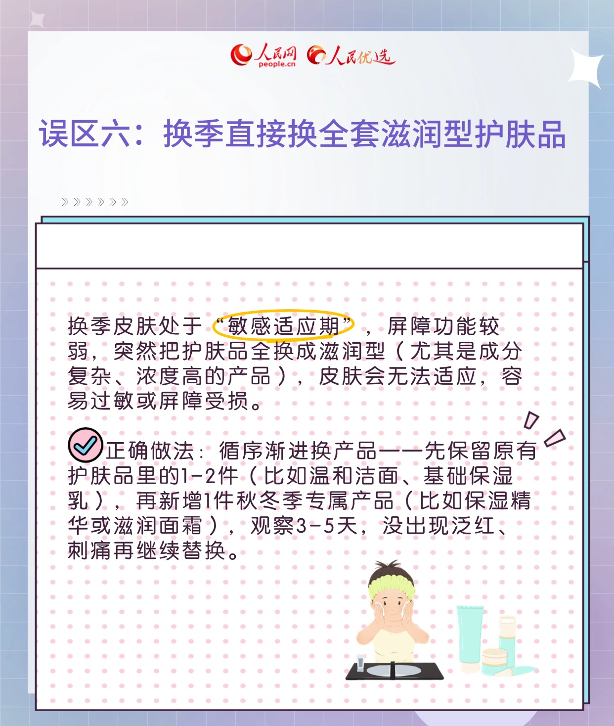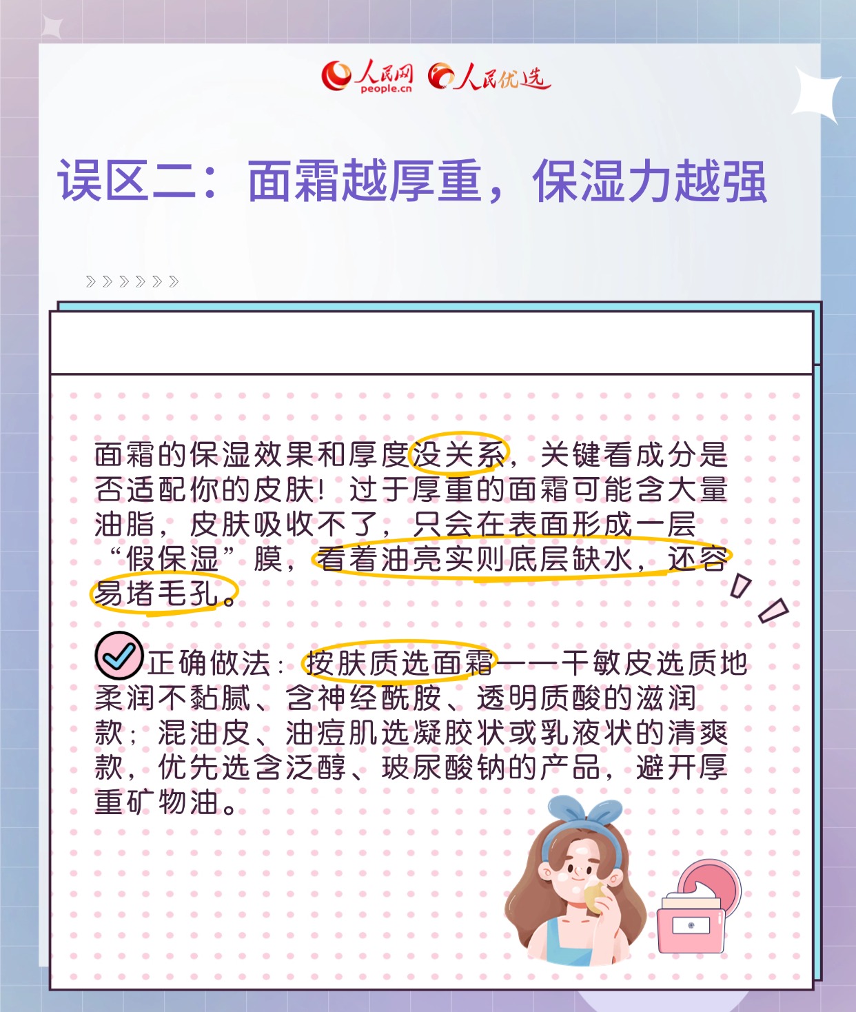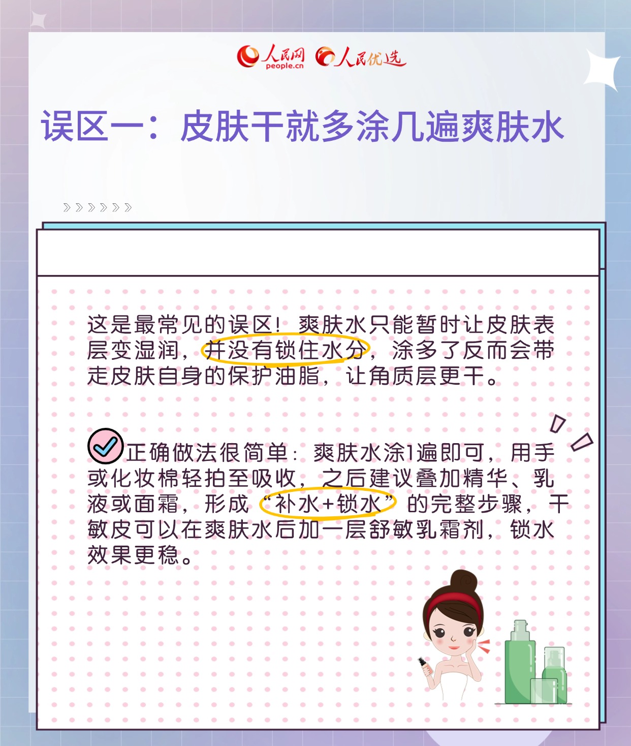 冬季皮膚干燥、緊繃甚至脫屑皸裂,其實是氣溫下降、空氣濕度變低導(dǎo)致皮膚水分快速蒸發(fā)的正?,F(xiàn)象。很多人急于補(bǔ)水保濕,卻因方法不當(dāng)效果不佳。本期《人民優(yōu)選來了》,為你梳理下面8個秋冬護(hù)膚常見誤區(qū),快看看你有沒有中招!